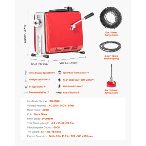Efikasno čišćenje začepljenja: VEVOR mašina za čišćenje odvoda pokreće se motorom od 500 W koji radi na 1400 obrtaja u minuti, pružajući snažnu snagu za dubinsko i efikasno čišćenje. Poboljšana kontrola naprijed/nazad, upravljanje kablom postaje lakše.