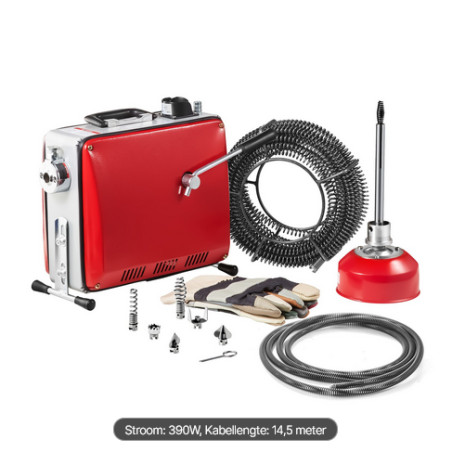 Za cijevi od 50 do 110 mm: Uključuje opružni kabl od 5 m x 9,5 mm za cijevi od 50–75 mm, 2 KOMADA opružnog kabla od 20 m x 16 mm sa interfejsom glave za rezanje od 16 mm za cijevi od 75–110 mm i fleksibilnu oprugu od 0,4 m x 12 mm koja pomaže u vođenju duge opruge kroz cijevi i uklanjanju jednostavnih začepljenja.